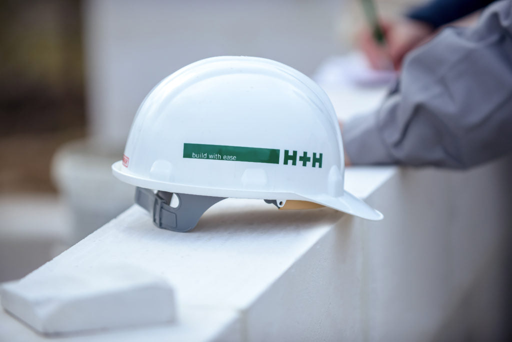 Der Efficient-Block von HplusH ermöglicht das gedämmte Bauen mit Porenbeton, bei dem die Wand in einem Arbeitsgang errichtet und gedämmt wird. Porenbetonsteine unterliegen keiner Schrumpfung oder Ausdehnung, wodurch die Entstehung von Fugen oder Nähten verhindert wird und der hohe Dämmwert erhalten bleibt.